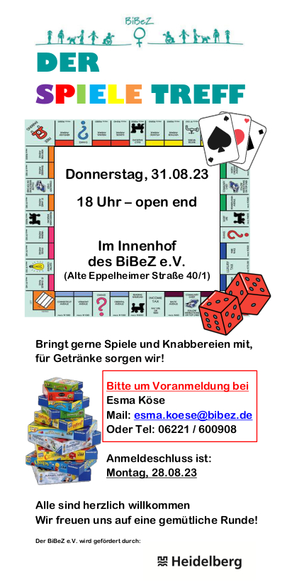 Das BiBeZ e.V. lädt alle Menschen, groß und klein, alt und jung, mit oder ohne Behinderung, herzlich zum diesjährigen Spiele-Treff ein.