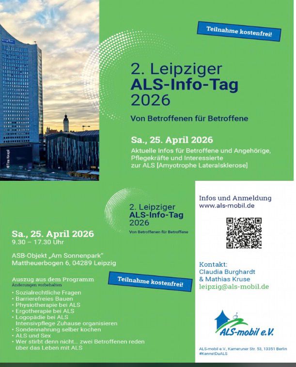 Auf dem ALS-Info-Tag erhalten ALS-Betroffene, Angehörige und Pflegekräfte aktuelle Informationen zur ALS. Das Format dient dazu, sich auszutauschen, Fragen zu stellen und sich Lösungen live anzuschauen.